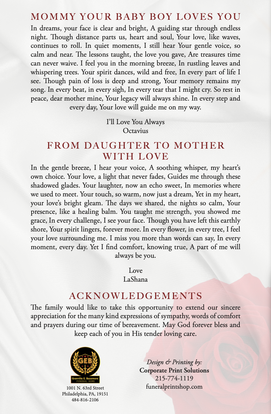 The company is reputable for providing memorable obituary programs for families throughout Pennsylvania, New Jersey, and Maryland.